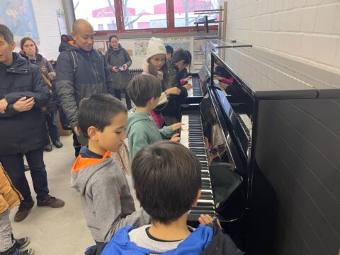 その後、子供たちが調律体験!ピアノのチューニングピンに、チューニングハンマーをセットして、それを動かしながら音のうねりをなくしたり、音の高さの調節にチャレンジ。みんな、試してはみるけれど、なかなか感触をつかむのは容易ではない様子。やってみて、「ピアノのけんばんじゃないところを見て触るのがおもしろかった」と率直な感想も。最後は、様々な種類のピアノを自由に弾き比べながら、大人も子供も楽しみました。